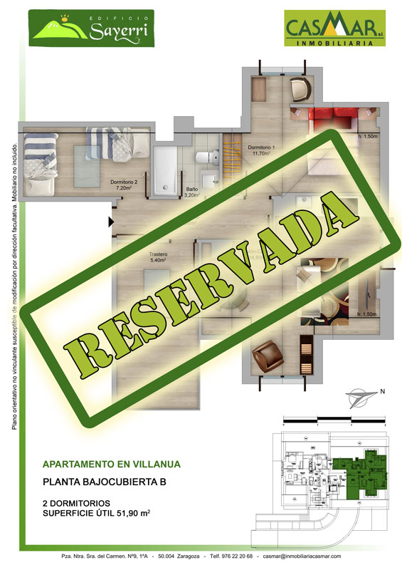 Inmobiliaria Casmar - Pisos Pirineo - Pisos Villanua - PLANTA BAJOCUBIERTA - B - Reservada