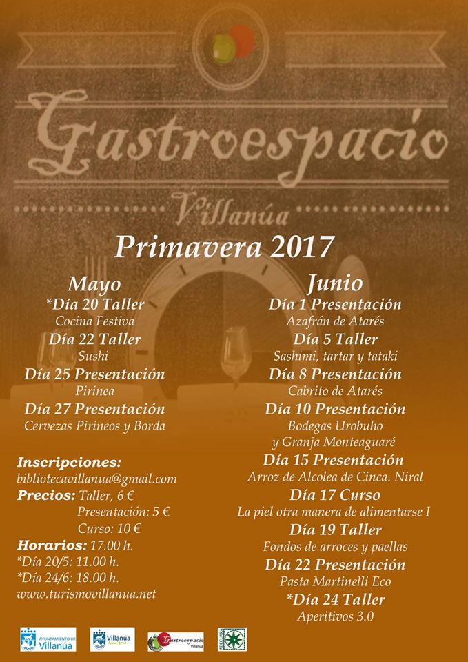 Todos los talleres se realizarán a las 18.00 h., y el precio de cada actividad es de 6 euros. Las plazas son limitadas y recordamos que para poder asistir a los talleres se requiere inscripción previa obligatoria a través de la biblioteca de Villanúa: bibliotecavillanua@gmail.com
