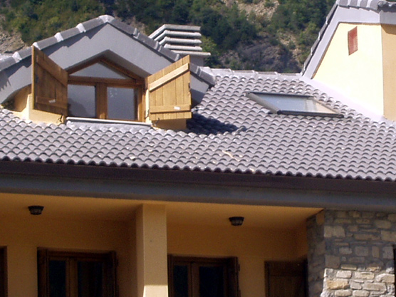 Carpintería exterior con contraventanas de madera de pino barnizada, y carpintería interior de madera de pino.